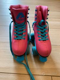 Vendo pattini a rotelle (modello Quad a 4 ruote) marca Apollo, modello Super Quad X Pro, Rosa/Azzurro. Le condizione sono molto buone, utilizzati pochissimo. La tomaia in ecopelle è ben conservata e le ruote mostrano minimi segni di utilizzo. L'imbottitura interna morbida per il massimo comfort e freno anteriore in PU coordinato. Le ruote ad alta elasticità adatte sia per uso interno (piste) che esterno (asfalto liscio) Taglia S (31-34). Ideali sia per principianti che per chi ha già esperienza e vuole pattinare con stile.