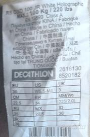 N. Scarpa 35-36, bianca con bande laterali argentato rosa. Ruote e freno di gomma, misure 54X32 mm. Tenute benissimo, usati 2 volte.