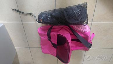 Pattini a rotelle in linea - Marca Bauer - Nr 40 e 1/2 Completi di protezioni per ginocchia e gomiti e sacca