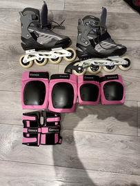 pattini inline nuovi mai utilizzati nr 40, completi con protezioni mani ginocchia gomiti