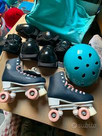 Pattini a rotelle nunero 37 con caschetto ginocchiere gomitiere e sacca il tutto acquistato da Decathlon