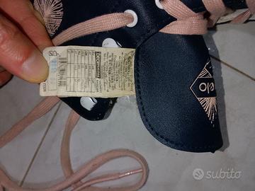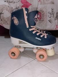 Bellissimi pattini a rotelle da ragazza, marca Oxelo, usati davvero pochissimo. Mia figlia li avrà utilizzati 5/6 pomeriggi, non di più. Sono taglia 37 EU come riportato dall'etichetta nella foto. Vendo causa inutilizzo; se interessati contattatemi via telefono o e_mail.