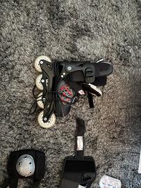 Pattini a rotelle bladerunner dotato di tutte le protezioni e pattini mai usati.