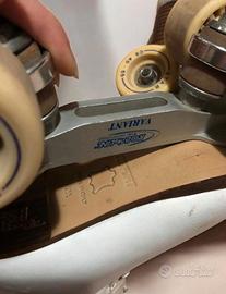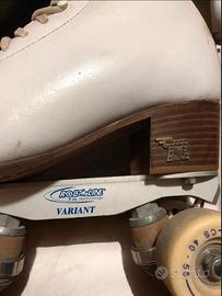 Vendo pattini a rotelle professionali Risport con piastra Roll Line. La misura della scarpa è N° 255 corrispondente al numero 38. Gli scarpooncini hanno evidenti segni di usura superficiale dovuta all'uso risolvibile con vernice bianca per calzature, ruote e tamponi buoni. Il prezzo indicato è per ritiro in zona Pesaro in quanto non so a quanto ammonterebbe la spedizione