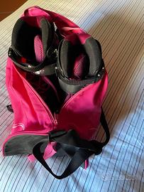 Colore nero e rosa, comprensiva di sacca porta pattini in tessuto con tracolla.