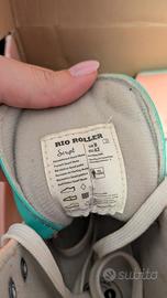 Pattini a rotelle marca Rio Roller, modello quad, colore rosa con dettagli turchesi.