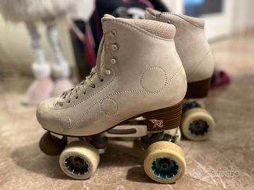 Pattini a rotelle professionali Marca Risport modello "Turchese" Numero 38 Vera pelle colore madreperla