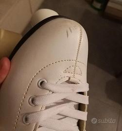 Utilizzati pochissimo come si vede dalle condizioni delle ruote e dagli interni. Hanno un piccolo segno sulla punta del pattino sinistro come si vede nell'ultima foto.