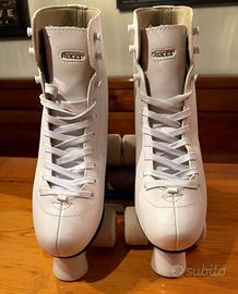 Vendo pattini a rotelle ROCES Rc2 Classicroller numero 38, utilizzati per un corso di 5 lezioni e poi mai più usati, quindi sono come nuovi e in perfette condizioni.