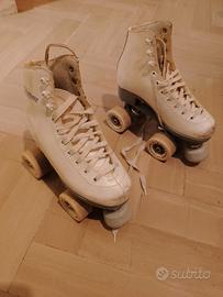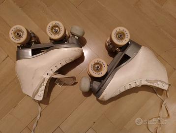 Pattini a rotelle Professionali ROLL LINE di eccellente qualità. Taglia 34 per bambina poco usati perché cresciuto il piede. Solo uso competizione agonistica. Telaio, rotelle e freni in ottime condizioni. Scarponcino in buone condizioni. 220€