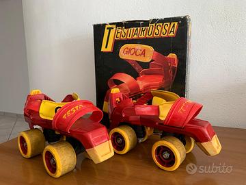 Pattini Testarossa -Marca Gioca- segnalo l'oggetto come usato...strausato un laccetto si è rotto e ci sono parti graffiate dall'asfalto, le ruote rotolano in modo fluido ripeto, l'oggetto è stato usato molto e alcune parti potrebbero non risultare perfette regolabili in lunghezza