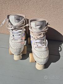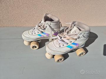 Vendo pattini a rotelle per bimba tg 35. I pattini sono in buono stato non sono stati sfruttati. Vendo per cambio taglia di mia figlia.