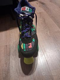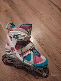 ATTENZIONE, Leggere prima di acquistare. Vendo pattini per inutilizzo Pattino rosa, azzurro e bianco: 20 euro Pattino verde, viola e nero:20 euro Se acquistati insieme 35 euro Prezzo leggermente trattabile Taglia del primo Pattino dal 38 al 40 e il secondo è una 38