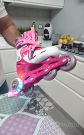 i pattini sono in un ottimo stato usati poco, inoltre tutte le ruote sono illuminati mentre scorrono. compreso di casco ginocchiere protezioni gomiti e polsi 20€