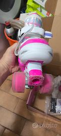 vendo ,per crescita piede,pattini a 4 ruote led rgb (si illuminano girando)non in linea,usati pochissimo ( 3 o 4 volte)completi di scatola e accessori/attrezzi.sono regolabili in lunghezza e la descrizione riporta dal 32 al 42 ma mia figlia ,che calza il 40,ci sta stretti a,quindi arrivano al massimo al 38/39.solo consegna a mano.