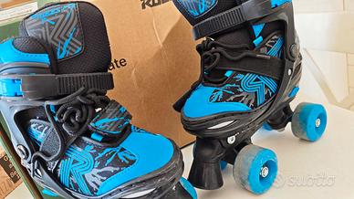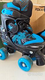 ROCES Quaddy 3.0 Boy - Pattini a Rotelle Quad Bambino Regolabili 4 Misure - Con Scafo in PE - Scarpa Anatomica con Imbottitura, Chiusura Lacci + Fibbia - Ruote PVC 54×32mm 85A, Cuscinetti ABEC 5. Taglia da 30 a 33 usate una sola volta. come nuove completo di scatolo. si vende anche kit casco + protezione ginocchia e gomiti. Consegna anche a mano a Napoli centro.