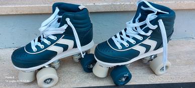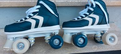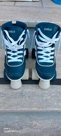 Pattini bimbo Oxelo completo di ruote. Misura 32 lunghezza scarpa 124 cm corredati di ginocchiere. nuovo mai usato corredato di ginocchiere e parapolsi.