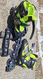 Vendo pattini a rotelle convertibili, utilizzabili sia in linea (ruote in fila) sia classici/quad (4 ruote), grazie alle basi intercambiabili incluse (come da foto).