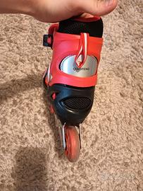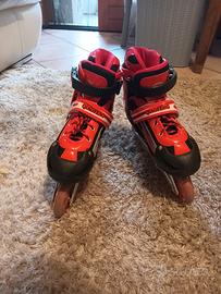 pattini a rotelle per bambini, rossi e neri, in buone condizioni. Sono perfetti per iniziare a pattinare, con misura regolabile da 33 a 37.