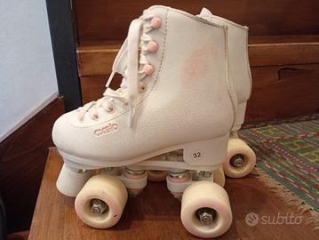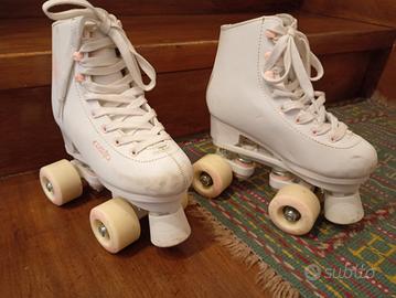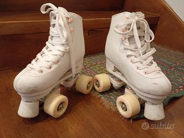 Usati 3 volte in tutto. Vendo a euro 20. Costo da nuovi euro 50 come da sito Decathlon. Per le specifiche potete consultare il sito Decathlon cercando "Pattini artistici quad 100"