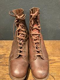 fantastici pattini da ghiaccio in acciaio temprato originali degli anni 30 scarpe con lacci in pelle marrone marca Imperator DD e Gloria il fondo della scarpa è contrassegnato dal marchio VeDeHa dei fratelli Leo e Dorus Van der Heijden di Oisterwijk - Paesi Bassi