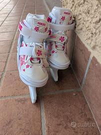 Pattini da Ghiaccio Bambina marca ROCES colore bianco/rosa, taglia 30/33 facilmente regolabili con un click.