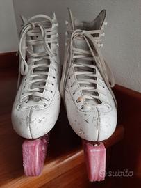 pattini da ghiaccio marca Risport modello RF Light misura 220 cm, n. 33. Lama a 6 punte in ottimo stato, scarpa con segni estetici di usura ma usata poco. la durezza dello stivale è mantenuta come da nuovi. Paralame rosa inclusi.