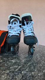 vendo pattini da hockey tecnopro N.38 usati in 4 occasioni e mai più usati sono perfetti sia internamente che esternamente non ci sono torsioni o pieghe la struttura e ancora rigida i lacci hanno ancora lall'acciatura originale giusto per capire che sono come nuovi.Acquistati nel 2019 da nuovi custoditi in ambiente asciutto nella sua sacca.