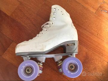 Pattini per fare gli obbligatori numero 33, perciò senza freni. Brand Risport. Incluse 8 ruote STAR HD 75-63. Taglia pattino 220.