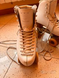 Pattini professionali per pattinaggio a livello agonistico, specialità obbligatori (non possiedono il freno davanti).