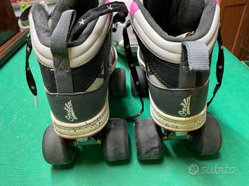 Pattini classici OXYLANE ragazza n.39 leggermente usurati nella punta, più set di protezione composto da ginocchiere, gomitiere e polsiere, con pochi segni di usura, ma perfettamente funzionanti, misura come da foto indicata, compreso casco OXELO 55/58 cm di protezione senza segni di usura gravi, utilizzato tutto veramente poco. (il tutto pagato su Decathlon circa 79 euro)
