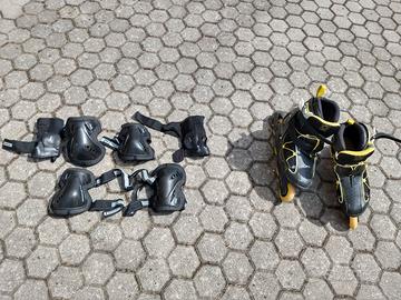 vendo pattini taglia 42,5 usati 3 volte con anche set gomitiere,polsiere,ginocchiere