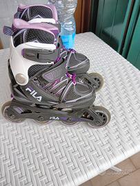 Vendo pattini della Fila in linea per bambini numero 28/32 per passaggio a pattini da agonismo,usati ma tenuti in buone condizioni, ottimi per iniziare a pattinare