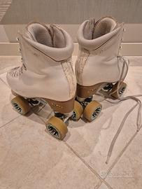 Vendo pattini completi per pattinaggio artistico a rotelle (specialità Danza/Solo Dance o Artistico), ideali per chi cerca un'attrezzatura professionale a un prezzo contenuto.