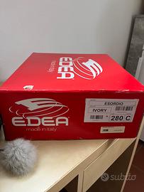 Vendo pattini a rotelle Edea Esordio colore bianco panna, lacci con brillantino, usati una sola volta con zainetto Edea, copripattini e scatola originale. Taglia 280 c equivale a 42. Comprati 8 mesi fa in negozio a Palmanova.