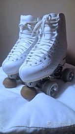 Pattini Edea come nuovi utilizzati 6 volte. Taglia stivaletto 225/34 + piastra Roll-Line Varant C regolabile a scatti micrometrici. Quattro ruote Diametro 55 Giotto Roll Line 49D volendo in alternativa Giotto blu , sia in Diametro 55 che in diametro 57.
