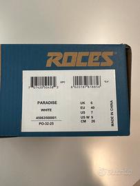 Vendo pattini ghiaccio marca Roces modello Paradise numero EU40. Pattini nuovi (mai usati) con confezione originale integra al 100%. Vendo causa regalo non gradito. Lama già affilata da casa madre.