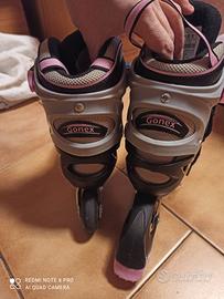 Gonex Pattini in Linea Regolabili per Bambini con Ruote Luminose (Taglia EU 31-34) Rosa/grigio
