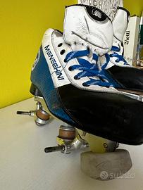 Vendo pattini da hockey pista usati senza ruote, in buone condizioni. piastra Variant 14 l’interno del pattino dx è un po’ usurato vedi foto ma non crea problemi.