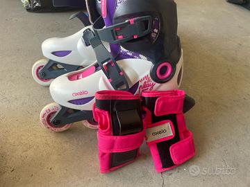 Pattini OXELO come nuovi, taglia 32/34 Completi di kit protezioni nuovissimo (1 ginocchiere, 1 gomitiere, 1 protezioni polsi, 1 casco)