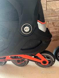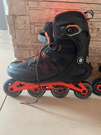 Pattini praticamente nuovi indossati una volta soltanto completi di protezioni per le ginocchia, per i gomiti e per i polsi.