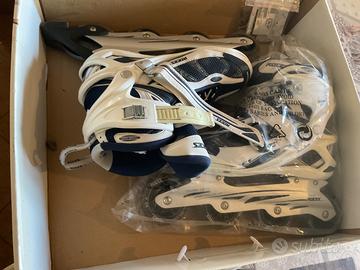 Vendo paio di pattini a rotelle in linea taglia 42,5; usati solo due volte per imparare ma praticamente nuovi con lievi segni di usura. Prezzo trattabile, no perdi tempo.