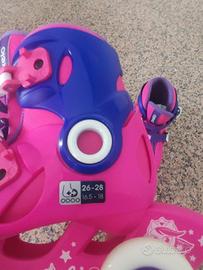 Vendo pattini in linea Oxelo da bambina come nuovi, usati solo 2 volte per non più di 10 minuti, misura dal 26 al 28, perfetti per seguire la crescita del piede e garantire sempre comfort e sicurezza.