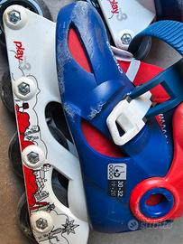 Stato: I pattini sono perfettamente funzionanti. Presentano dei graffi sulla parte anteriore della plastica blu e rossa (visibili in foto), dovuti alle normali prime cadute, ma che non compromettono assolutamente l'utilizzo. Ruote e freni in buono stato.