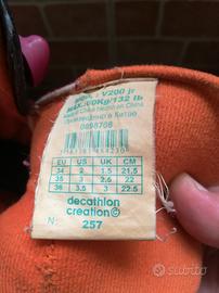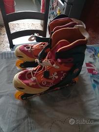 Pattini in linea bambino, regolabili in tre misure marca Decathlon, modello V200 Junior, numero 34/35/36,colore rosso arancione, usati ma non rovinati, le ruote sono poco usurate. Non spedisco.
