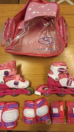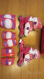 Set di pattini in linea per bambina, completi di protezioni. La taglia è regolabile da 26 a 29.