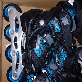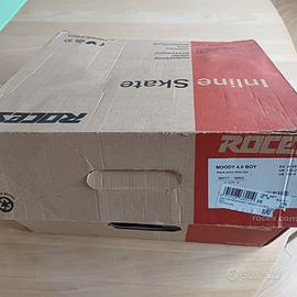 Pattini in linea per bambino, marca Roces, taglia 30-35, perfette condizioni, praticamente nuovi, ancora contenuti nella scatola di acquisto. Completo di due set di ginocchiere e paragomiti per bambino. Vendo per inutilizzo