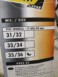 Pattini in linea, in buono stato presentano alcuni segni dovuti all'usura ma non sono rotti. Taglia 35 36