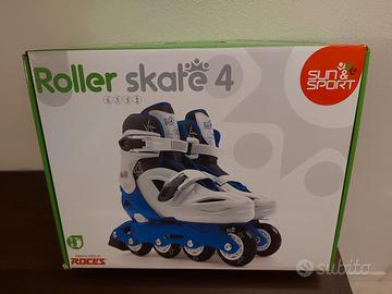 Pattini in linea Roller Skate 4. Colore bianco e blu. Misura dal 36 al 40. Fibie regolabili, regolabili in lunghezza, freno posteriore. Paragonabile al nuovo, portata massima 100 kg
