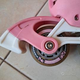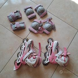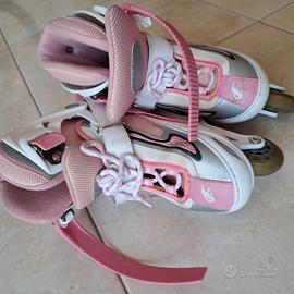 Pattini in linea Fly per bambina e ragazza. Usati pochissimo, numero regolabile da 34 a 37, freno posteriore, stabili e sicuri, vendo compreso di protezioni ginocchia, polsi e gomiti